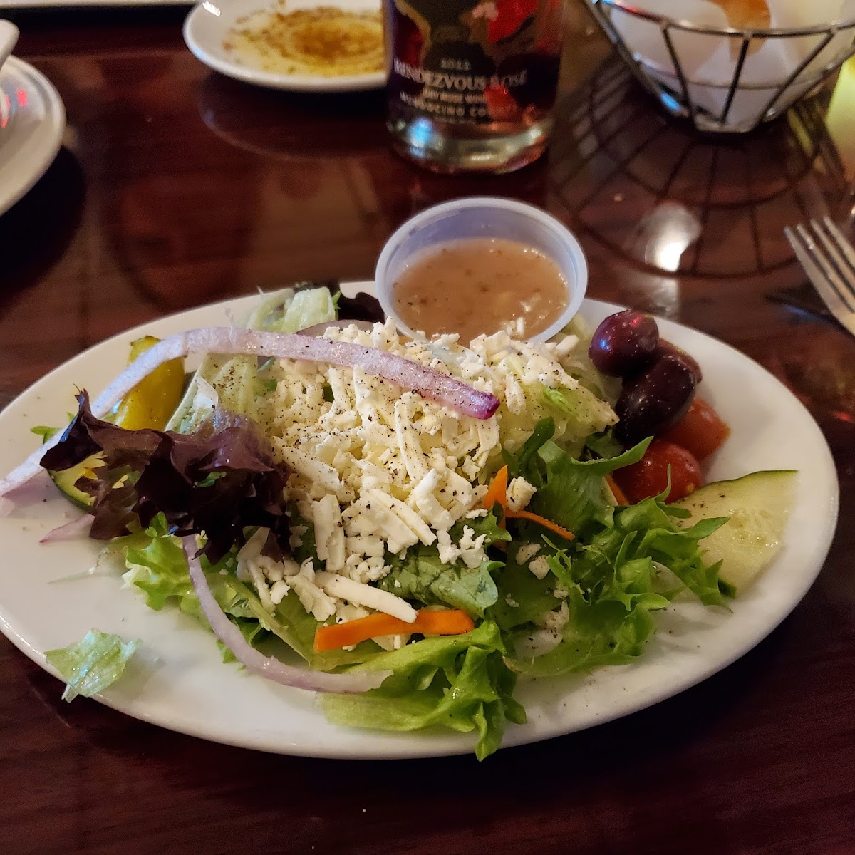 Quite possibly the best gyro I have ever had. Service was extremely friendly and attentive. The restaurant was very busy at dinner time on a Saturday night around 7:00 p.m., but wait time was still very reasonable (10-15 minutes). I can understand why The Grapevine is such a popular destination. 4 or 5 of the parties were celebrating birthdays. Live music added to the ambiance. Thank you so much!